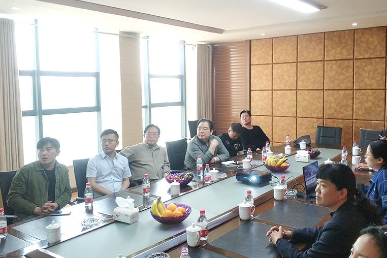 胜华陪同代表与中铁集团一行人一同来到胜华会议室, 由胜华公司技术部主任毛晓丹对胜华的产品,科研,专利,售后,领域等多方面的内容向中铁集团进行详细的介绍。